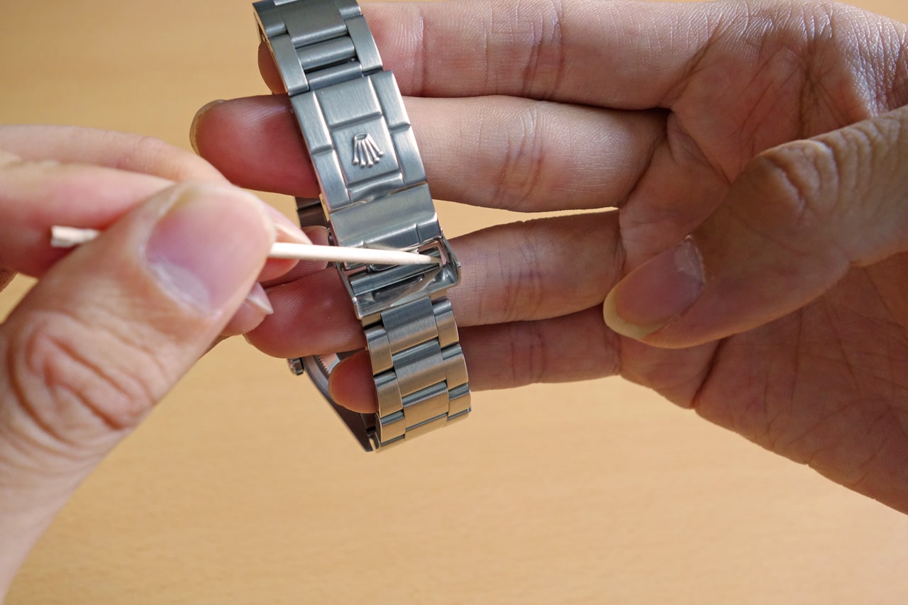 特にブレスレットのコマとコマの間や裏ぶたの溝は、汗や皮脂の汚れが溜まりやすく汚れがちです。そのままにしておくとサビの原因になりかねません。