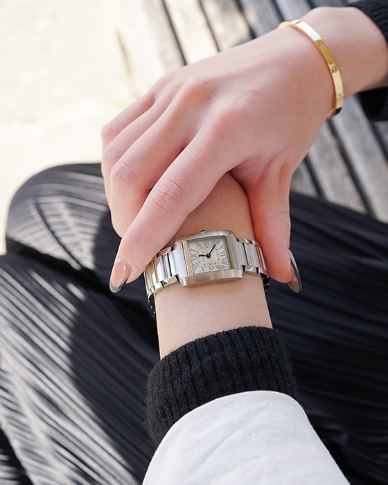 1997年に誕生して以来、レディースブランドウォッチの大定番としてその名を馳せるカルティエのタンクフランセーズ。なかでもステンレススチール×白文字盤 Ref.W51008Q3は、最もスタンダードなモデルとして世界中の女性から愛されてきました。