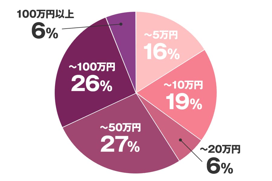 また、頭金ありでローン審査を申し込まれた方の頭金金額の内訳は、以下のようになっています。