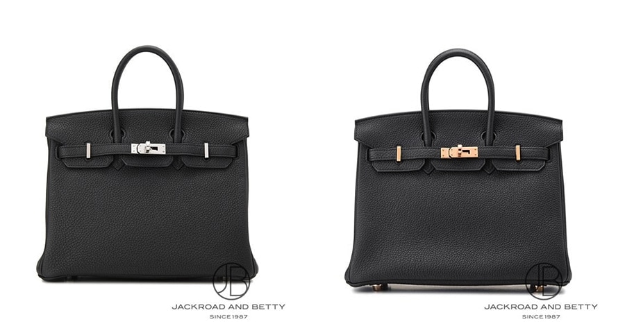 バーキン25 ノワール 金具:シルバー(左)、金具:ピンクゴールド(右)