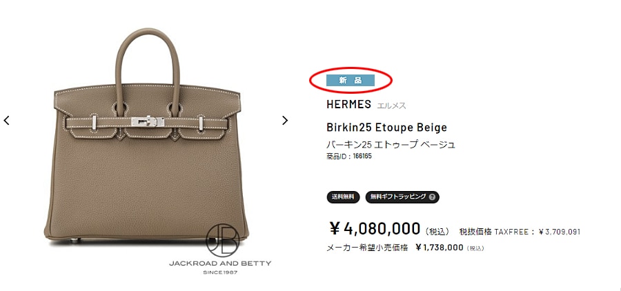 製造されてから1度も消費者の手に渡っていないバーキンが、新品バーキンです。