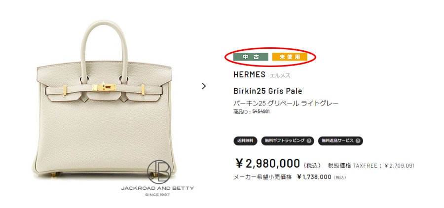 新品、中古、未使用中古など、さまざまなコンディションで流通するバーキン
