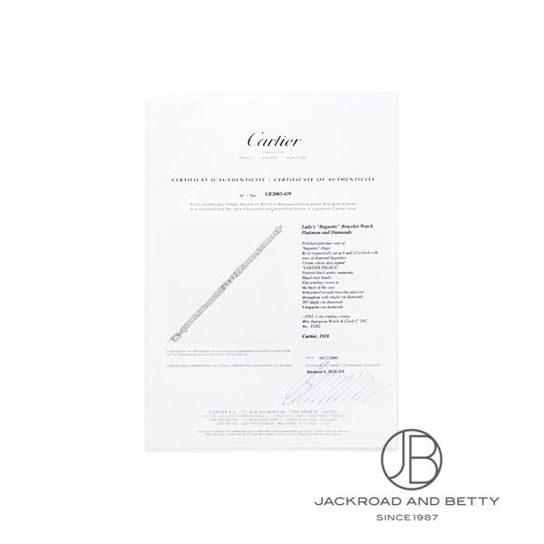 大変希少性の高いカルティエ「アール・デコ」ウォッチです。搭載された極小のムーブメントは、後にジャガー・ルクルトとメーカー名を改めることになるEW&C「ヨーロピアンウォッチ&クロックカンパニー」のもの。 プラチナに297個のシングルカットダイヤモンドをセッティングした丸みのあるブレスレットのフォルムは、フランスパンのバゲットを思わせます。こちらの商品には2003年に発行されたカルティエの証明書が付属されています。