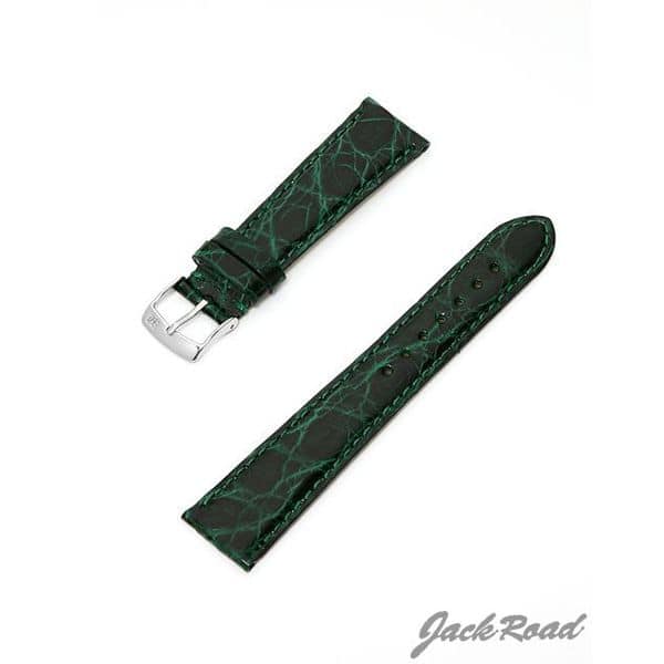 19世紀イタリアで創業した老舗革ベルトメーカー「モレラート」の「アマデウス 18mm」は、中南米産カイマンの皮革を使用したブランドを代表する人気商品。貴重なクロコダイル素材にシックなエメラルドグリーンをあわせた高級感漂う革ベルト。