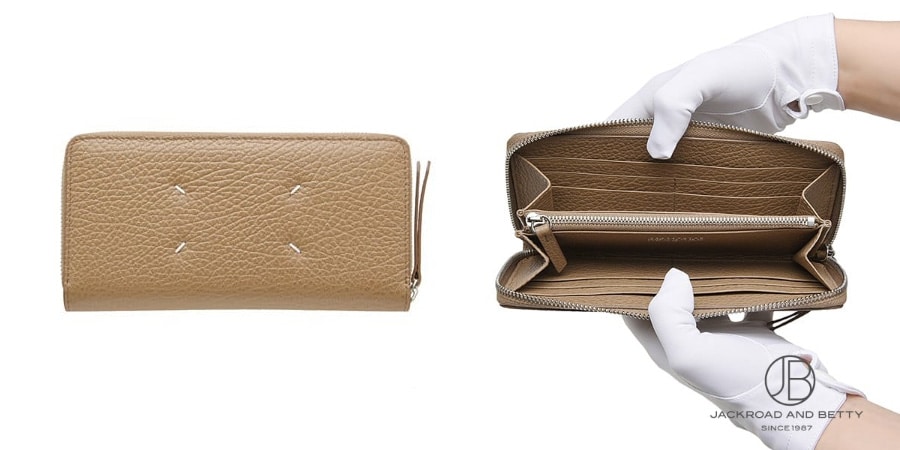 型破りな服作りでファッション界に旋風を巻き起こし、おしゃれ感度の高い人たちがこぞって取り入れているブランド、メゾン マルジェラ。象徴的な4つのステッチはお財布にも健在です。ミルクティーのような優しいベージュカラーが洗練された印象を醸し出します。