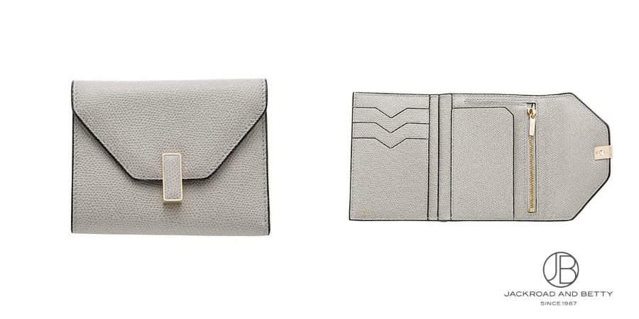 コンパクトで機能的なヴァレクストラの二つ折り財布。手帳ケースを思わせる、クラシカルで普遍的なデザイン。スナップボタン付きのメタルパーツはライトゴールドカラーで、上品な印象を与えます。カラーは落ち着きを感じさせるベージュ、カシミア。ほかにもヴァレクストラらしい、淡く美しいカラーが展開されています。