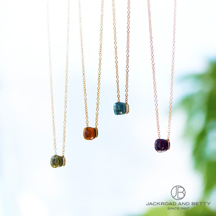ロンドンブルートパーズ、アメシスト、プラシオライト、レモンクオーツなど、さまざまなカラーストーンがラインアップされており、リングやピアスも含めてコレクションしたくなる可愛らしさです。