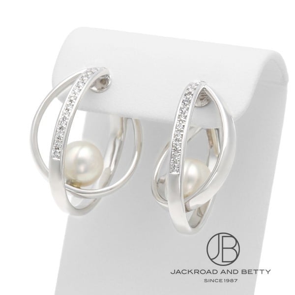 パールの上品さを極限まで際立たせた都会的なデザインは、やはりタサキによるもの。0.11カラットのダイヤモンドを並べた美しい立体的なフォルムは18Kホワイトゴールド製(耳を挟むネジ部分はK14WG)。