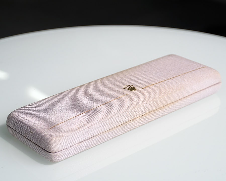 尾錠とりゅうずはロレックスの王冠マーク入り。尾錠はカメレオン登場初期の旧型タイプで、現在ではとても貴重なものです。