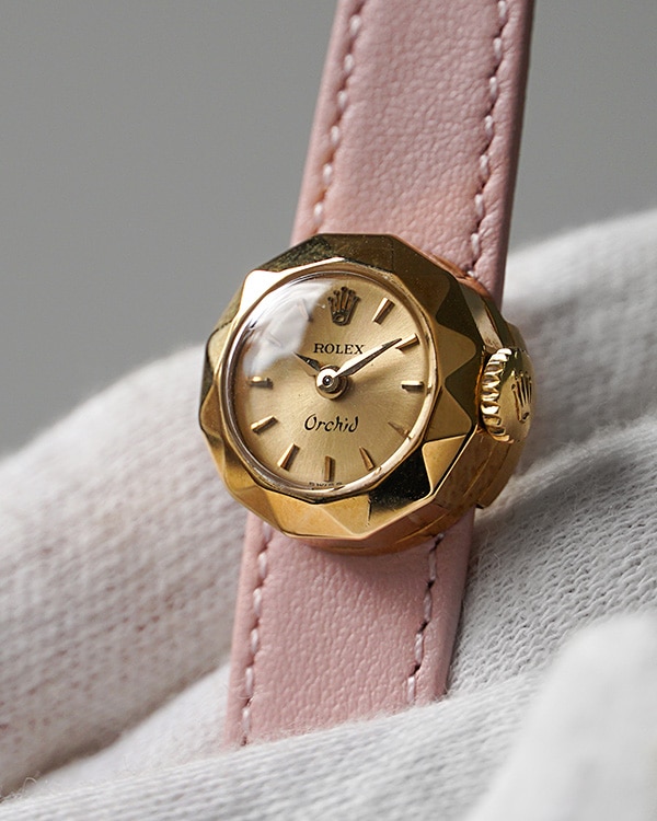 6時位置にプリントされたオーキッド(Orchid)は、蘭の花のことです。ロレックスのレディースモデルに与えられた唯一のペットネームといわれています。