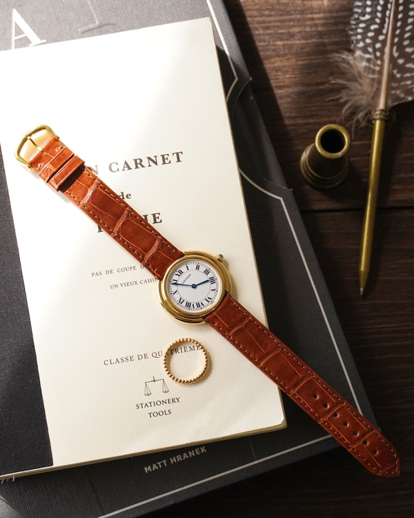 カルティエの本店があるパリのヴァンドーム広場の名を冠したモデル。優美なラウンドケースが特徴