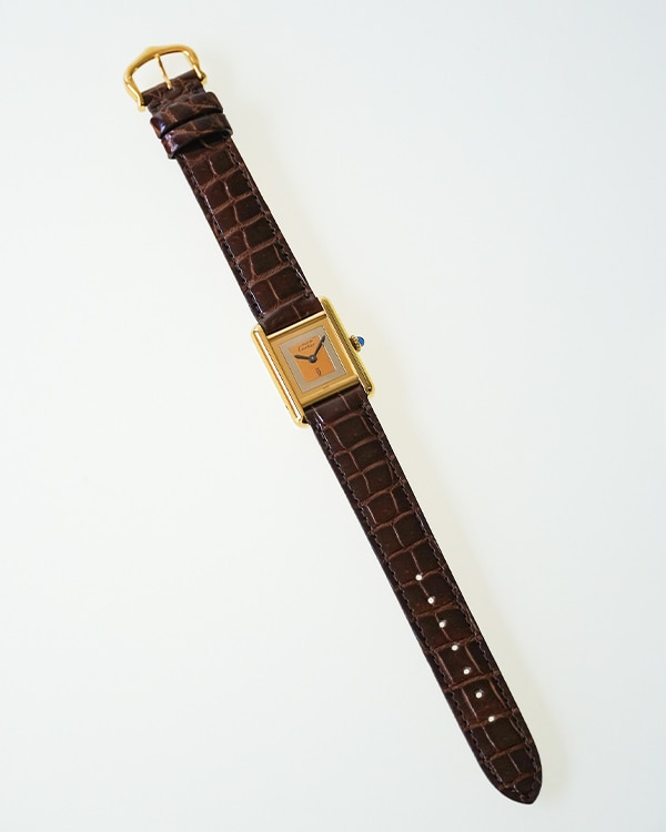珍しいスリーカラーゴールドの文字盤は、カルティエの人気ジュエリー、トリニティとの相性も◎